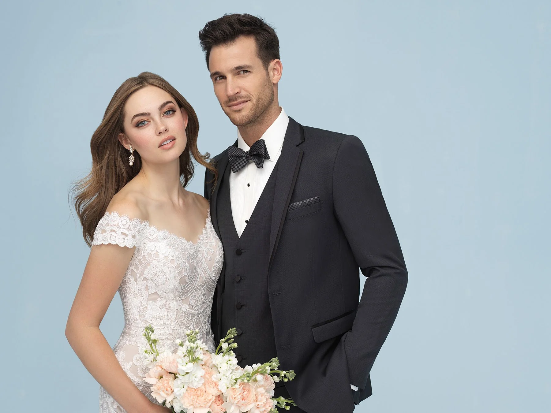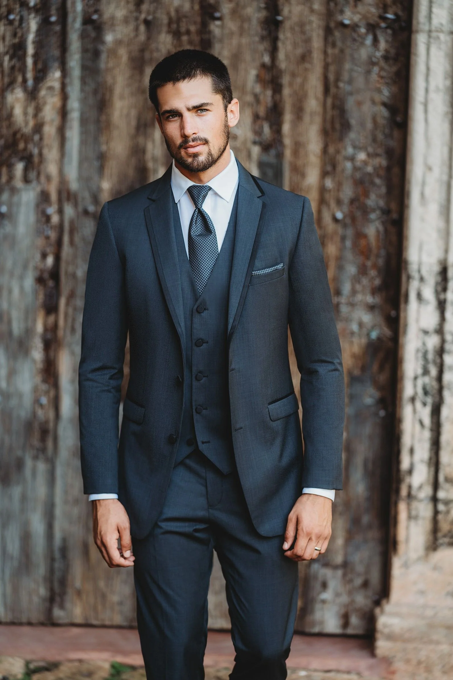 The Allure Men Granite Grey “Brunswick” Tuxedo is a slim fit tuxedo with a 2-button front, self notch lapel w/ satin trim, satin besom flap pockets, self top collar w/ satin trim, and is fashioned from a Super 130’s Merino Wool. Whether it’s a Prom, Wedding, or Sports Banquet the Granite Grey…